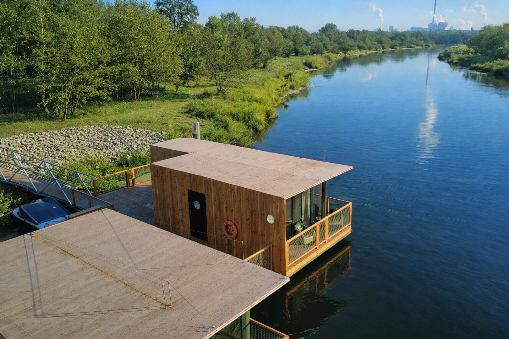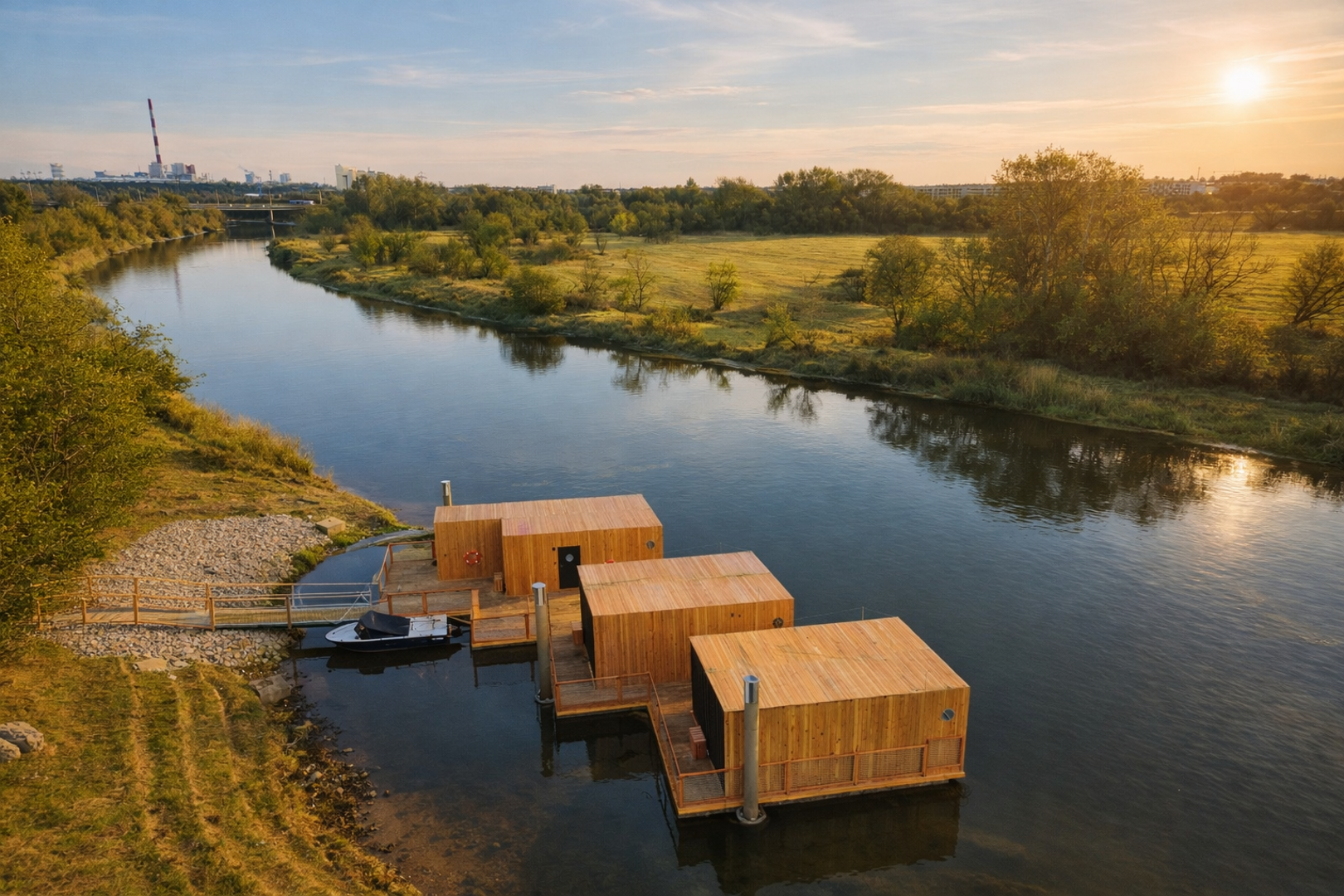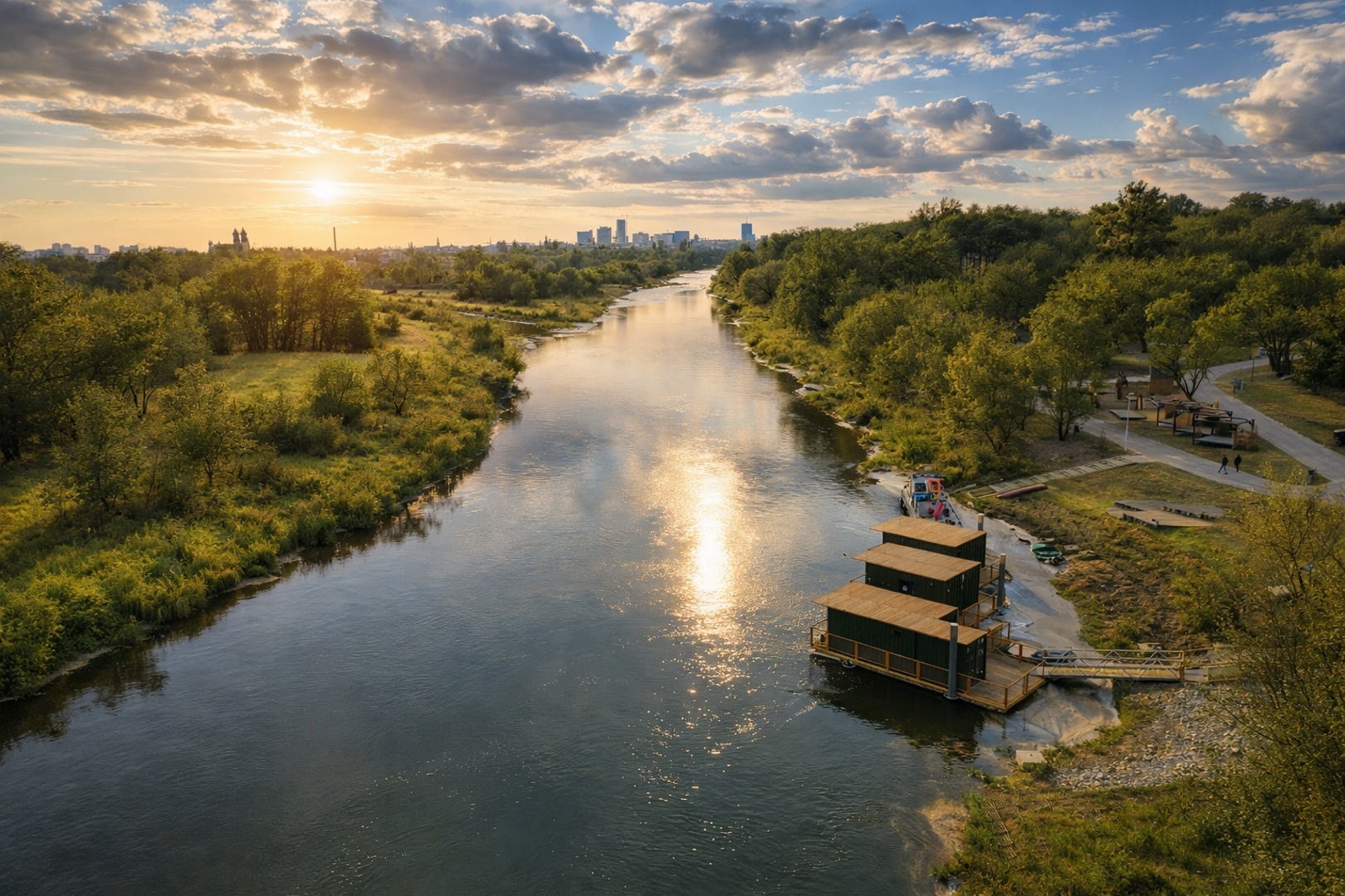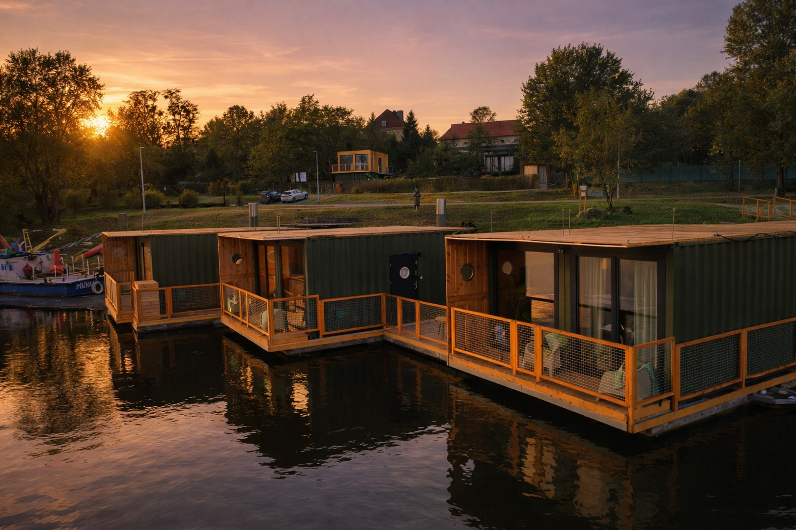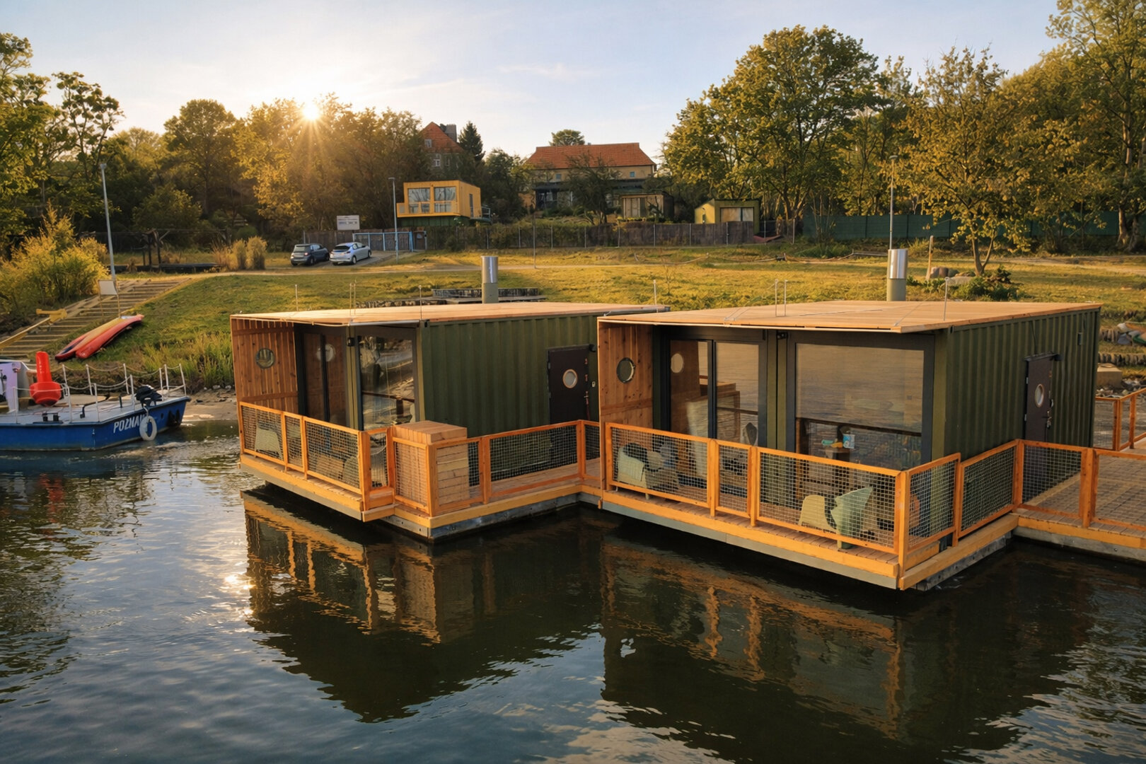 Domy na wodzie i w ogrodzie to kameralne miejsce nad rzeką Wartą, które powstało z miłości do natury, jako alternatywa dla typowych noclegów w mieście. Położone na Szelągu, w zielonej, spokojnej części Poznania, zaledwie 10 minut od Starego Rynku, łączy bliskość centrum z bezpośrednim kontaktem z przyrodą. Przestrzeń sprzyja wypoczynkowi, dłuższym pobytom i wspólnemu spędzaniu czasu, bez miejskiego zgiełku, ale z pełnym komfortem.