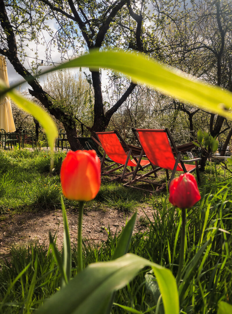 Dla Gości na terenie pralnia, marina, miejsce na ognisko, hamaki w sadzie owocowym, latem dostępny jest bar - restauracja. Atrakcją jest również wybór warsztatów rzemieślniczych: warsztaty ceramiczne, z farbowania tkanin, gry na bębnach.