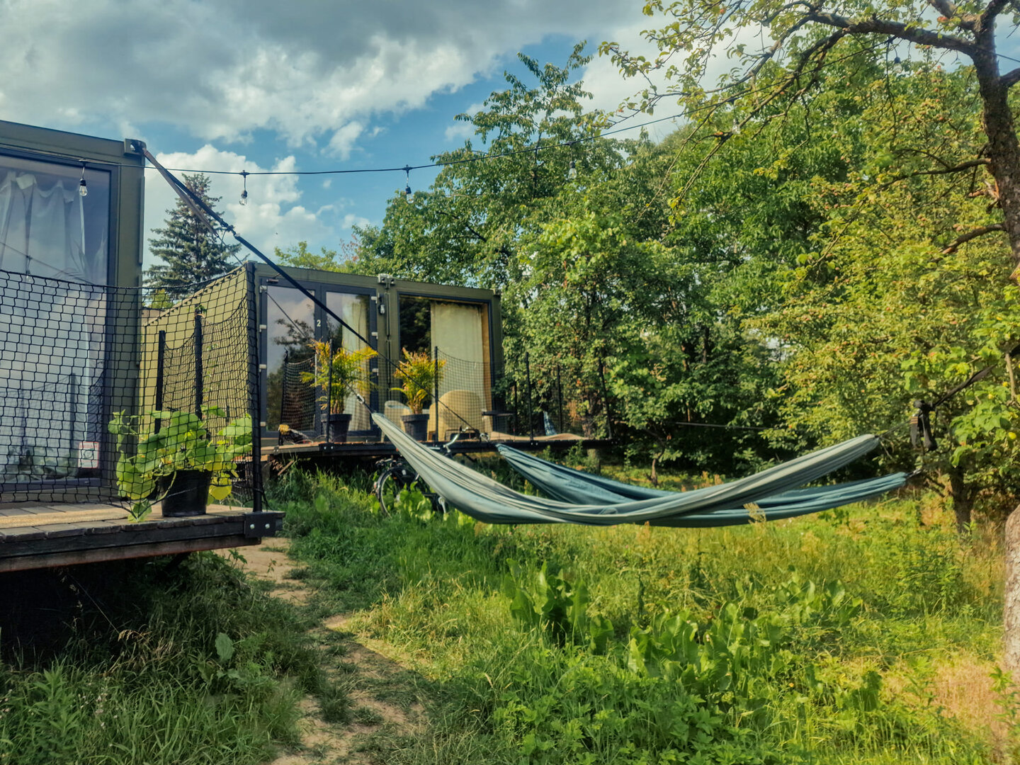 Unikalny, zielony i cichy pobyt nad rzeką Wartą, 5 minut od Starego Rynku w Poznaniu. Nowoczesne domki z tarasem wśród zieleni, klimatyzowane, z aneksem kuchennym i łazienką. Kajaki, rowery, rejsy jachtem, warsztaty rzemieślnicze, marina, ognisko, hamaki